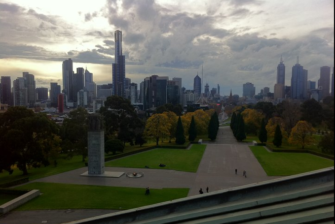 I walked up the Shrine of Rememberence the other day when a mate of mine Dave came to visit from Sydney. Loved the view. I hated the blood my shin produced walking up there.