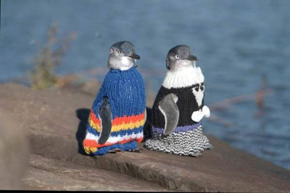 My mate Joseph would like me to knit jumpers for penguins who are effected by the oil spill in NZ. I only have red wool, will they be confused? Would red penguins be outcasts?