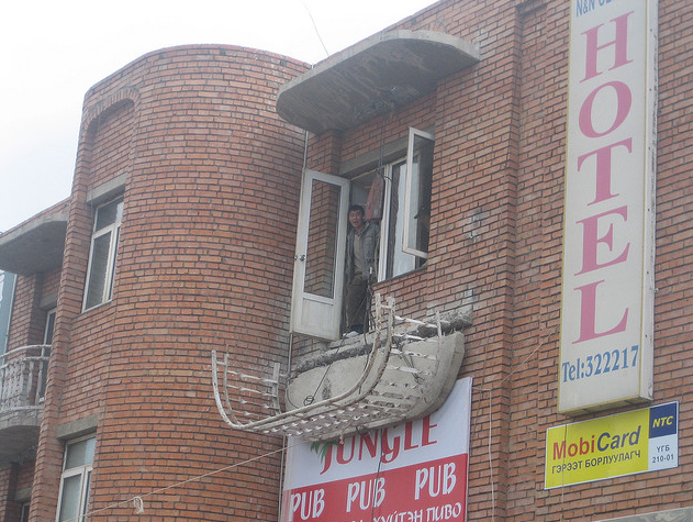 Ok the word furniture is a loose term. Its a few planks of wood nailed together that leans against our wall on the balcony. Probably why it was in the gutter, waiting for the garbage truck. It weighs about 15 KG, and somehow still got over the balcony railing. It totally would have killed anyone, if they had been basking in the rain and wind below. Thankfully no one was, though a snail COULD have been. Or an overfed dog.